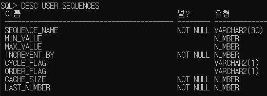 DESC USER_SEQUENCES