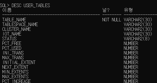 DESC USER_TABLES