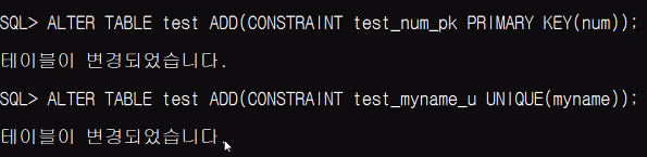 같은 방식으로 ALTER TABLE ADD를 사용해서 제약조건도 설정할 수 있다.