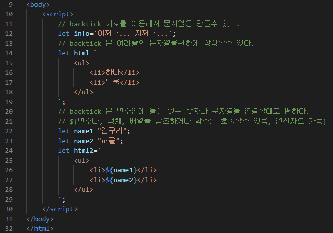 backtick은 문자열을 작성할때 유용하게 사용된다.