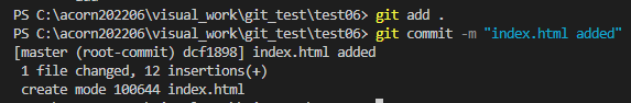 game.html은 untracked 파일의 앞글자인 U가 나오며 index.html은 modified의 약자인 M이 옆에 나온다.