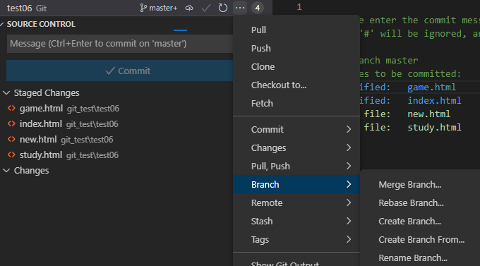 checkout to, create new branch를 순서대로 눌러주고 원하는 branch명을 작성해준다. 이후 checkout to를 사용해서 원하는 브랜치로 이동이 가능하다.